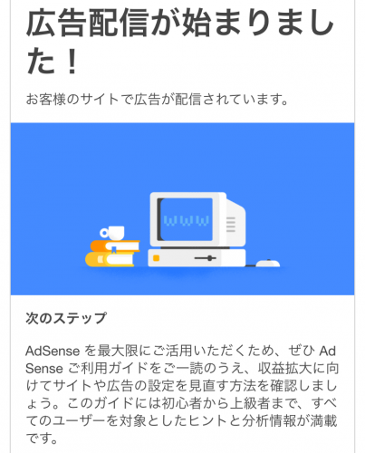 すでにサイトとアドセンスのリンク(コードの貼り付け)は済ませているし、空白の広告も貼り付けているので、このメールが届いたからといって、何もすることはありません。